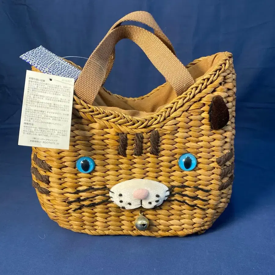 루토트 고양이 얼굴 디자인의 귀여운 바스켓백, 방울이 달려 있어 개성 있습니다.
