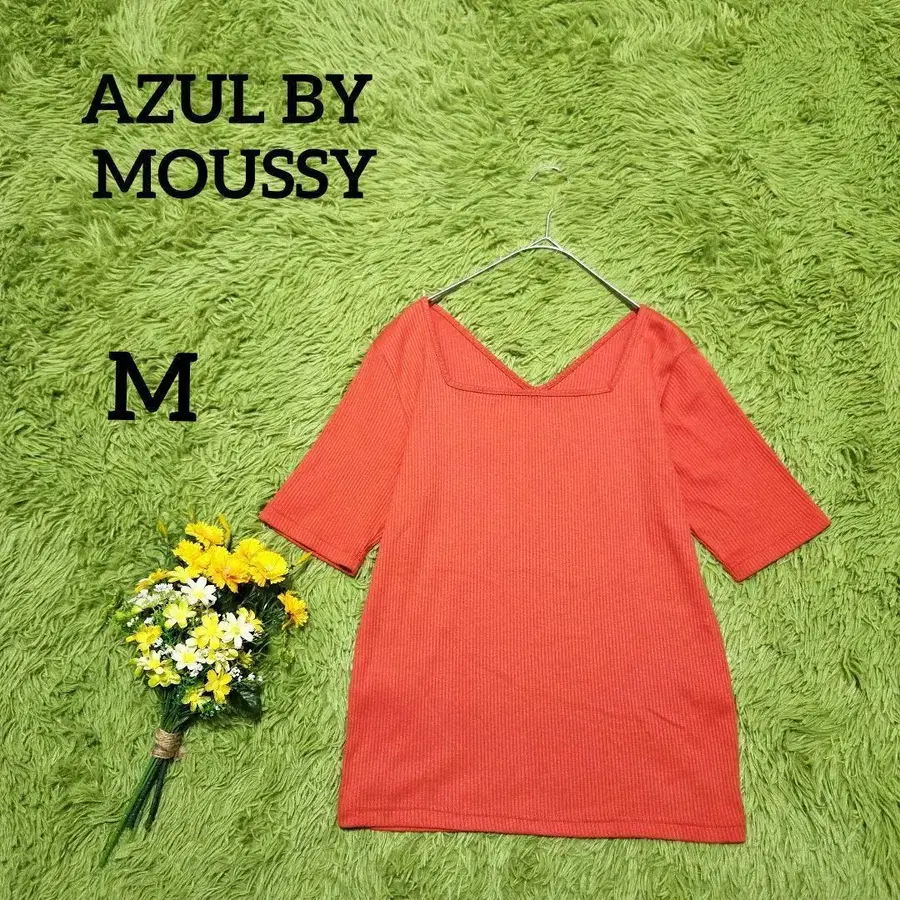 [ 아줄바이마우지 ] 2WAY 리브 티셔츠 M 오렌지 V넥
