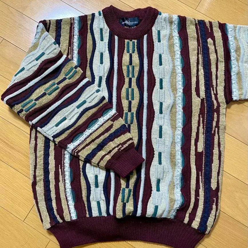 멀티 컬러 스트라이프 3D 니트 스웨터