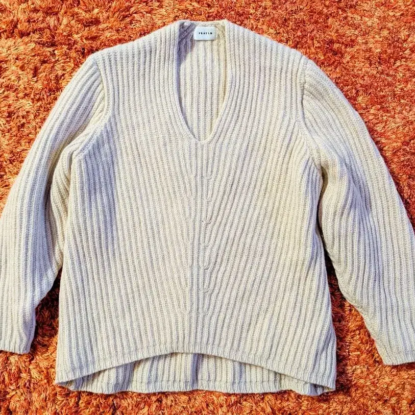 FRAY I.D 양모 V넥 스웨터 니트 베이지 두툼한 리브