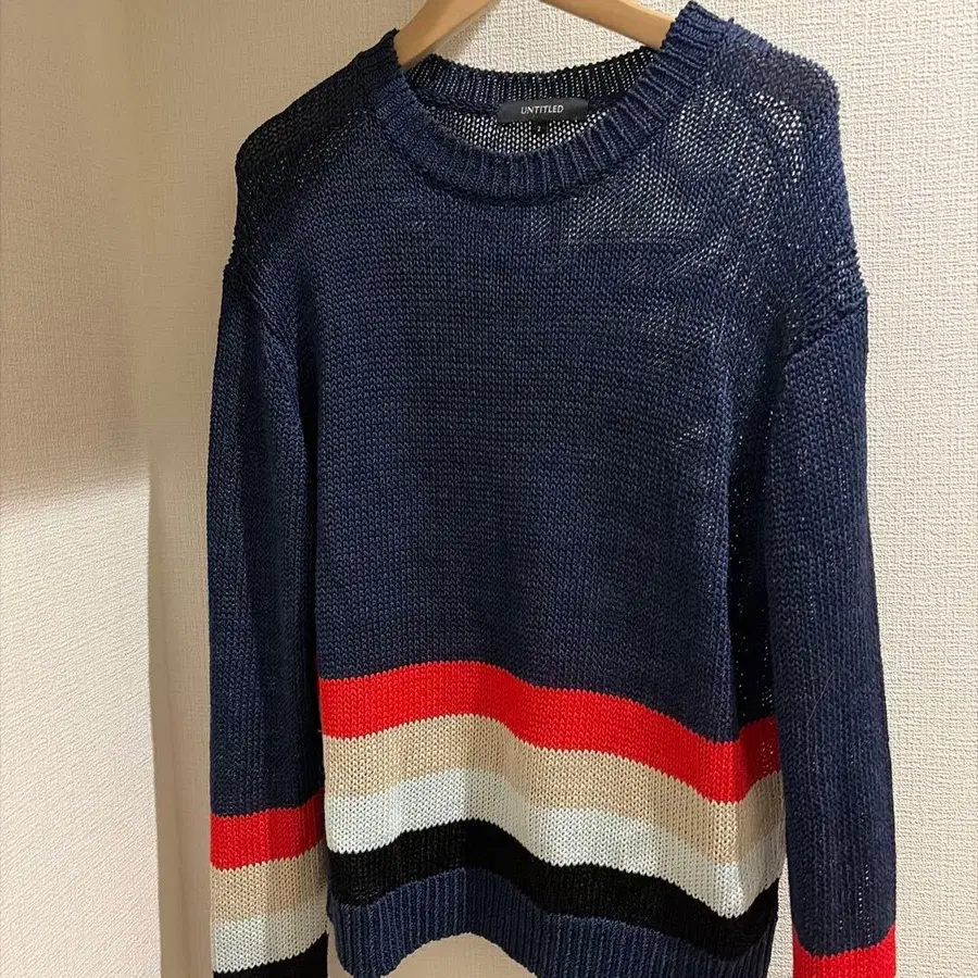 UNTITLED 니트 멀티 보더 숏 기장 니트 네이비
