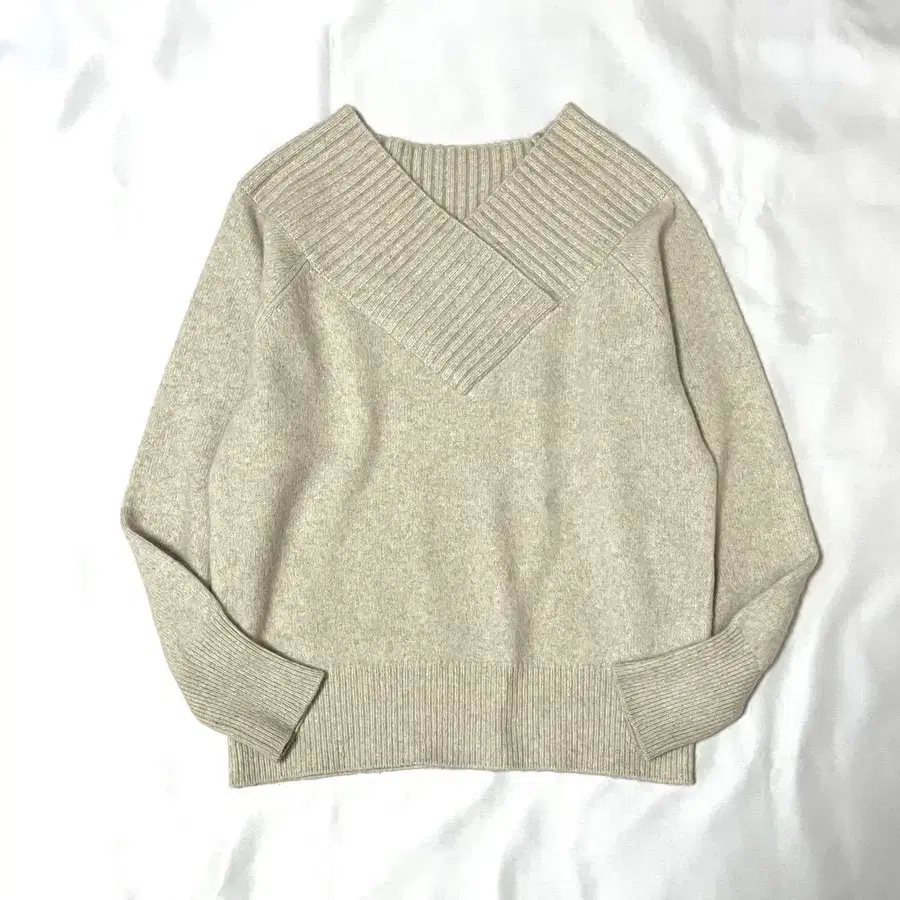 23구 울 폭스 혼방 베이지 V넥 리브 니트 세탁 가능 최근
