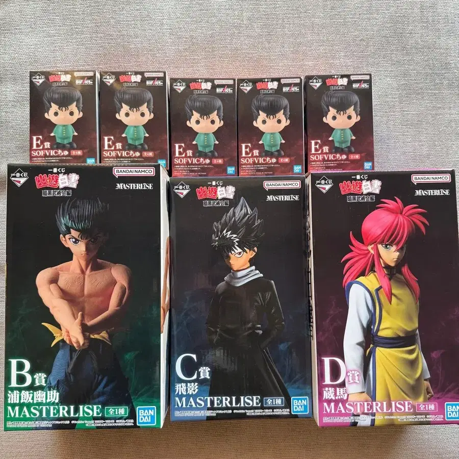 [ 암흑 무술 대회 편 ] B상 우라이 유스케 MASTERLISE 전 1종 C상 히에이 MASTERLISE 전 1종 D상 쿠라마 MASTERLISE 전 1종 E상 SOFVIC 츄 5개 총 8점 판매합니다. 다른 상품들도 다수 판매 중이니 묶음 구매도 가능합니다.