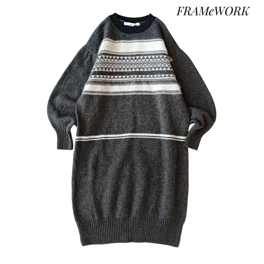 • 새상품급 FRAME WORK 프레임워크 니트 원피스 울 100% 그레이