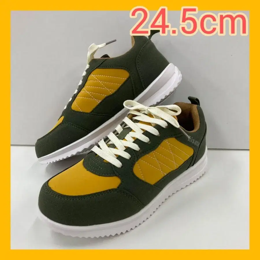24.5cm 새상품 여성용 경량 컬러 슈즈 화려한 스니커즈 카키