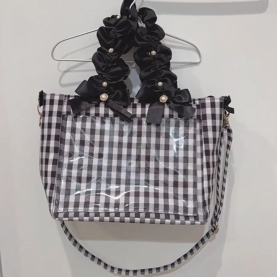 자카마트 - A4 다기능 2WAY 핸들 프릴 토트백 체크 블랙
