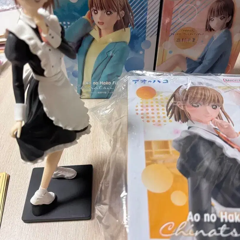푸른상자 사슴노 치나츠 피규어입니다. 축제 피규어는 새상품과 개봉 완료 2개이며, 뒤쪽 피규어는 개봉 완료입니다.