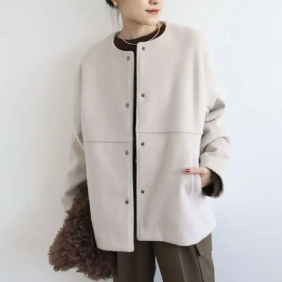 • coen 라이트 멜톤 노카라 미들 코트