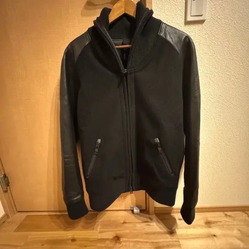 ripvanwinkle 블랙 바시티 자켓 호스 가죽