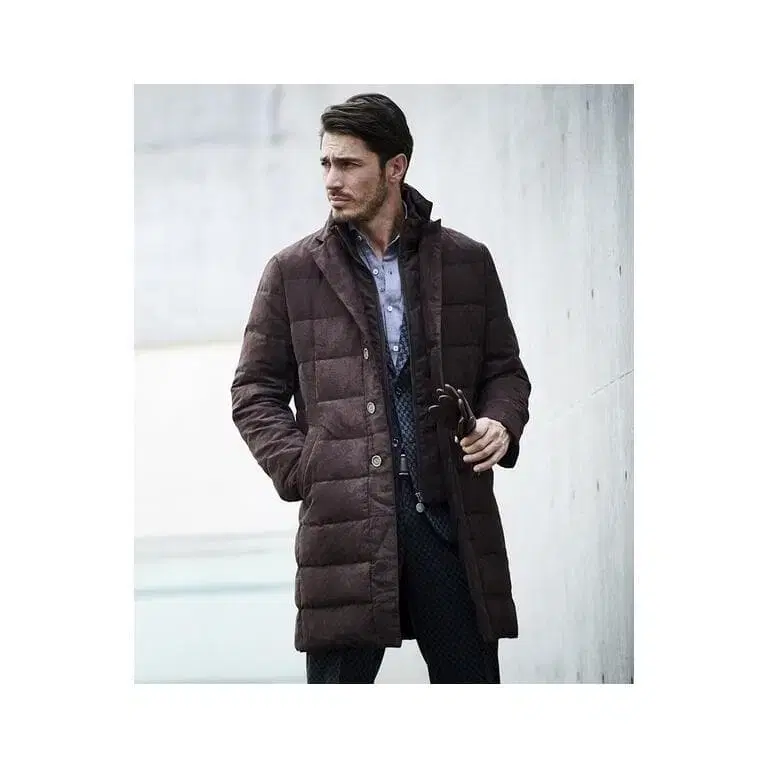부드럽고 매트한 고급스러움이 있는 페이크 레이어드 롱 다운.