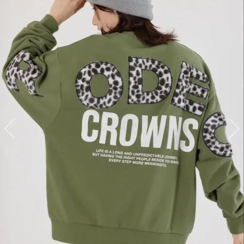 로데오 크라운 와이드 보울 이번 시즌 신상 애니멀 인조 모피 아플리케 맨투맨 상의입니다.