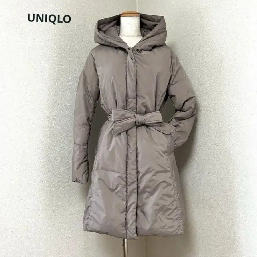 동일 원단 벨트로 허리를 잡아주어, 다운 특유의 부해 보이는 느낌을 없애고 깔끔한 미 실루엣으로 착용하실 수 있습니다. 인기 있는 **그레이지 (카키 베이지)** 색상으로, 어떤 코디네이트에도 잘 어울리는 한 벌입니다.