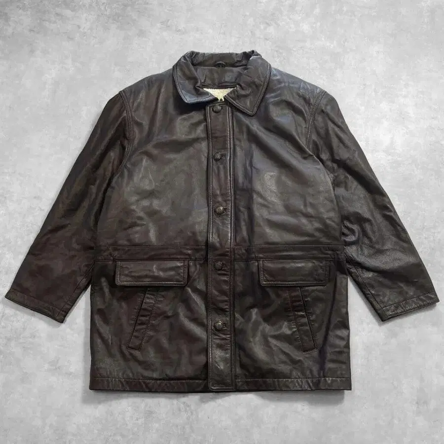 빈티지 천연 가죽 보아 안감 라이너 가죽 자켓 M 다크 브라운