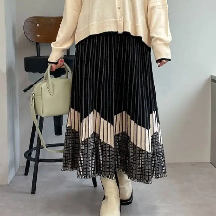 larmoire de luxe 플리츠 롱 스커트 베이지 x 그레이