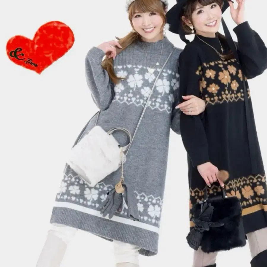 하트 클로버 자카드 니트 원피스 L 사이즈 그레이 &LOVE