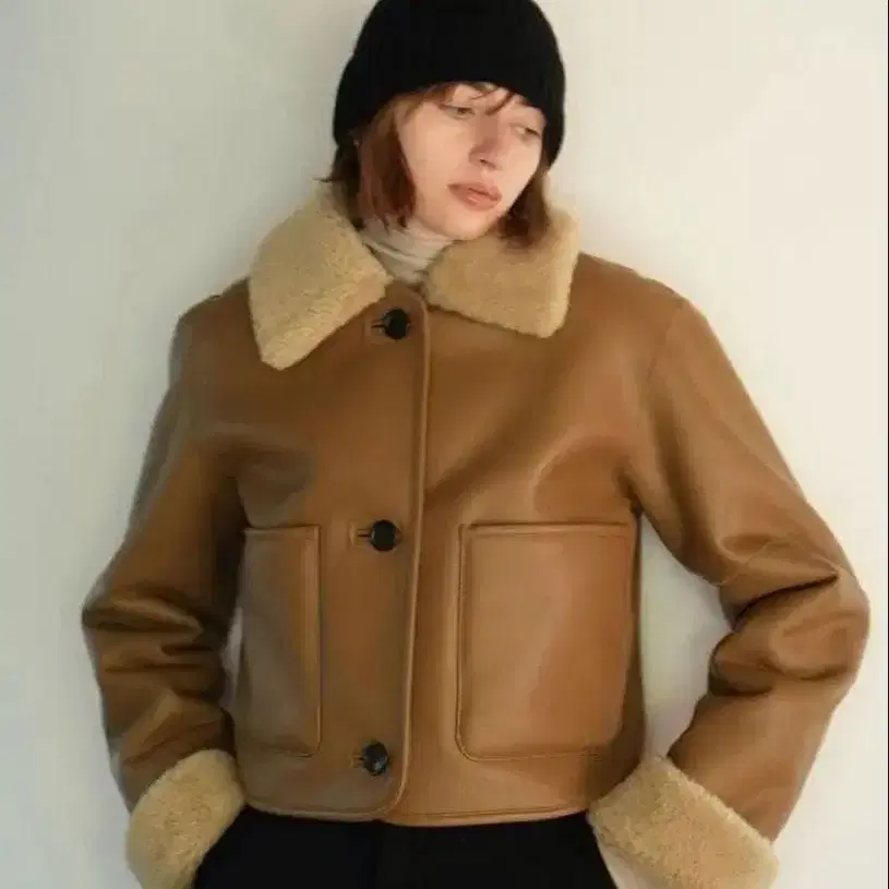 비건 레더와 보아를 본딩한 숏코트입니다.