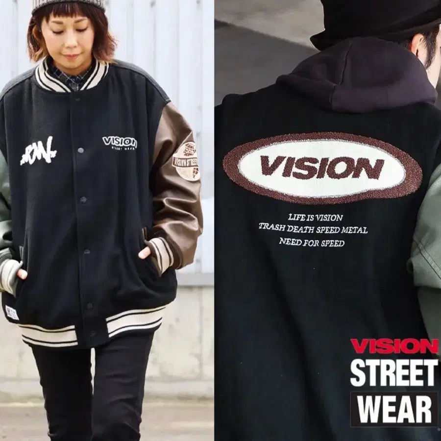 자동 번역되었어요. 원문보기[ VISION STREET WEAR ] 원포인트 로고 자수 & 오벌 로고 사가라 백 자수 리브 라인 멜톤 스타장 / PU 가죽 스타장 / 빅 실루엣