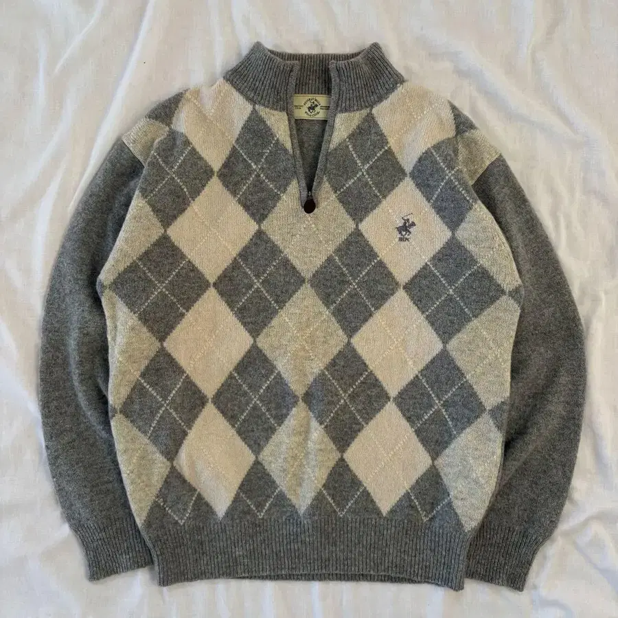BHPC 남성용 하프 지퍼 스웨터 니트 아가일 울 구제 의류 L