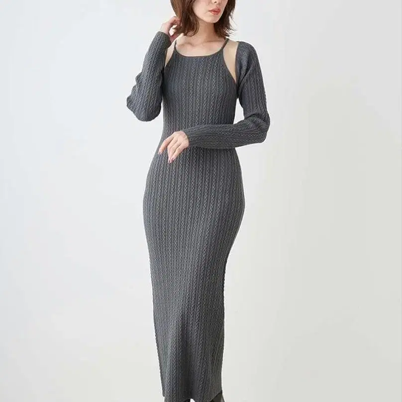 크롭 기장의 가디건이 세트인 아메스리 니트 롱 원피스가 도착했습니다. 가는 실로 꼼꼼하게 케이블 편직한 고급스러운 니트 원단이 바디에 핏되어 아름다운 스타일을 연출합니다. 적당히 두께감 있는 원단으로 신체 라인을 드러내지 않는 것도 매력입니다. 가디건 세트이므로 인기 있는 아메스리 디자인도 착용하기 쉽게 완성되었습니다. 아직 더위가 남은 시기에는 가디건 없이, 조금 추워지면 가디건을 더해 오랜 기간 착용할 수 있는 아이템입니다. 핏감이 좋은 고급 원단이므로 셔츠나 자켓과 함께 코디하는 것도 추천합니다.