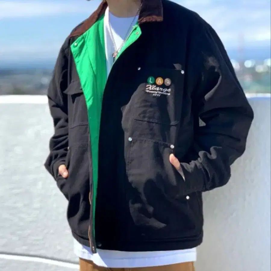 [ 상품 설명 ] 표면은 덕 소재, 뒷면은 폴리에스테르 소재를 사용한 리버서블 사양의 워크 자켓.