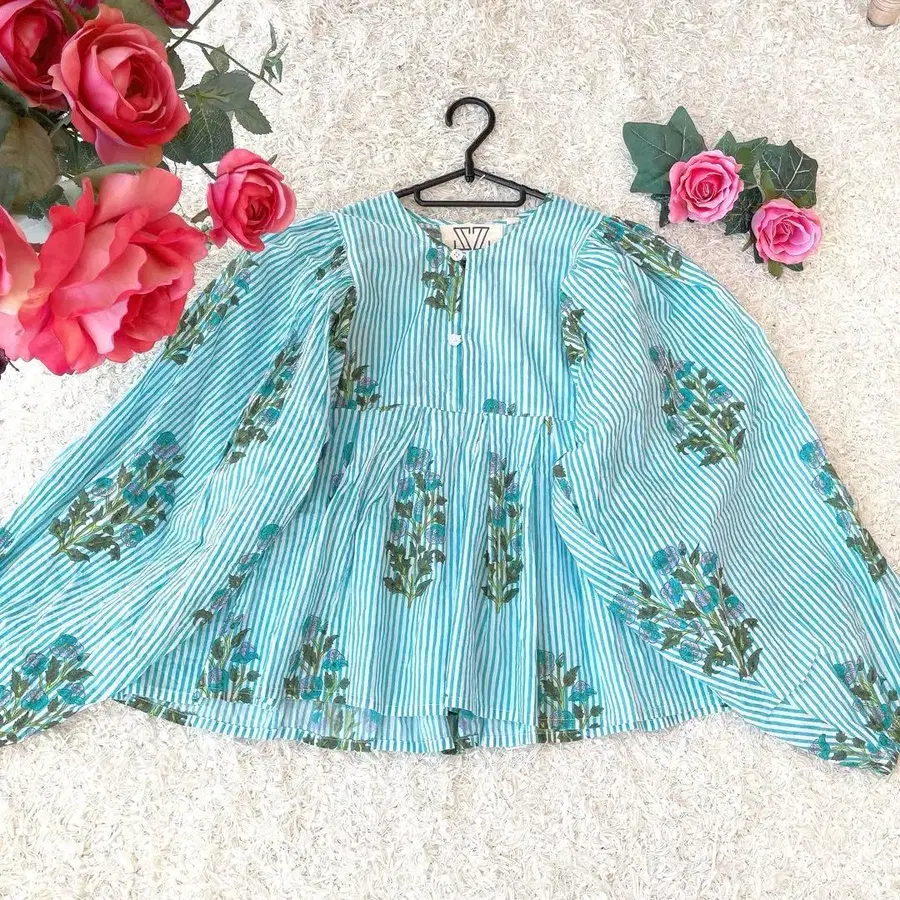 SZ Blockprints 에스제트 블록 프린트 EVA TOP ANEEZA 노카라 블라우스 상의 2023SS 스트라이프 x 플라워 꽃무늬 푹신한 볼륨 소매와 플레어 라인이 여성스러움을 더합니다 ◎ 코튼 100%의 산뜻한 착용감이 편안하며, 스트레스 없이 지낼 수 있습니다. 숏 기장이라 하의와의 밸런스도 절묘합니다! 정가 - 31,900엔 사이즈 - S 소매 길이: 약 60 cm 가슴 너비: 약 50 cm 기장: 약 50 cm [ 상태 ] 몇 번 착용했습니다. 정말 귀여운 블라우스입니다 ✨ 얼룩 등은 없지만, 면 특유의 주름이 있습니다. ☆ 수천 엔의 대폭 가격 인하 협의는 삼가해 주십시오. *주의 사항* 작은 흠집, 얼룩 등은 발견하지 못할 수도 있습니다. 한 번이라도 사람의 손을 거친 상품이므로 완벽한 것을 원하시는 분은 구매를 삼가해 주십시오. 구매 후의 트러블을 피하기 위해, 궁금한 점이 있으시면 구매 전에 반드시 확인해 주십시오. 부디 잘 부탁드립니다. #tama_closet ✽ ...:* ゜ ✽ ...:* ゜ 소매 길이 - 긴팔 색상 - 블루 패턴 디자인 - 벌룬/볼륨 소매
