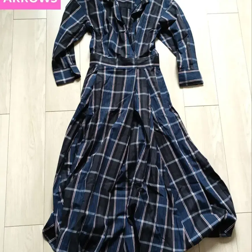 새상품 그린 라벨 릴랙싱 네이비 체크 무늬 롱 셔츠 원피스
