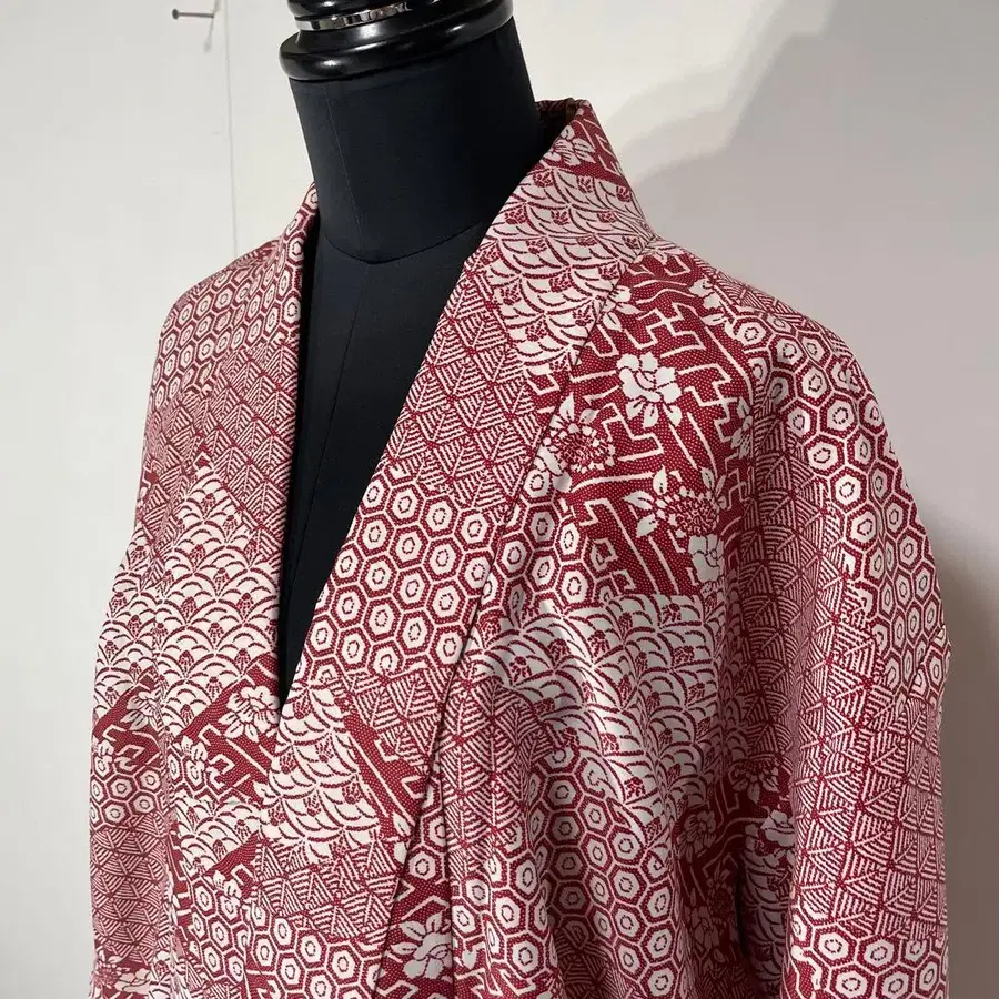 기모노 단의(한 겹) 거북 등 무늬, 공자 짜임, 동백꽃, 둥근 깃