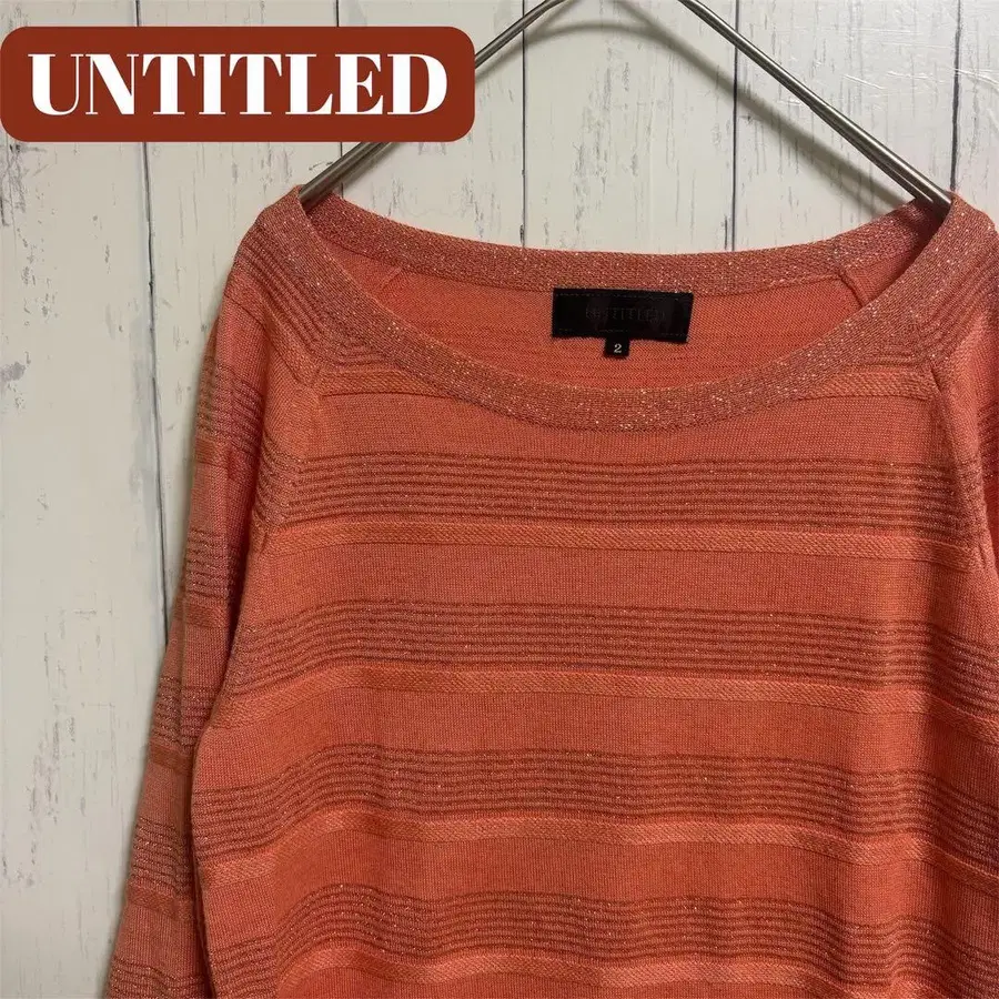 #UNTITLED #언타이틀 #니트 #스웨터 #보트넥 #라메니트 #보더 #피치오렌지 #M사이즈 #월드 #깔끔한캐주얼 #오피스코디 #출퇴근 #돌려입기