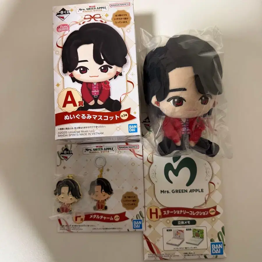 Mrs. GREEN APPLE 제일복권 A상 봉제 인형 마스코트 오오모리 모토키 F상 메탈 참 오오모리 모토키 H상 문구 컬렉션 (입체 메모) 입체 메모는 미개봉입니다. 상자는 접어서 포장합니다. ◎ 즉시 구매 가능 낱개 판매 불가입니다