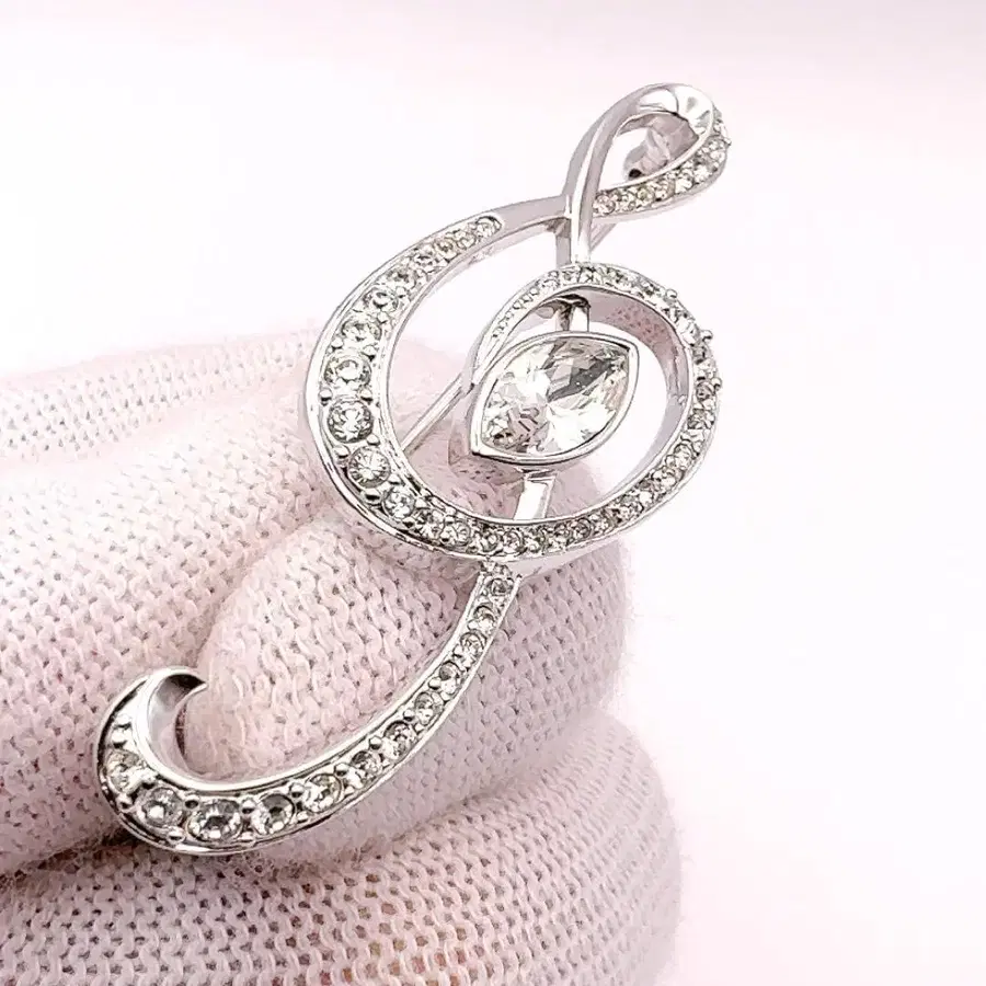 스와로브스키 브로치 음표 파베 클리어 크리스탈 실버톤