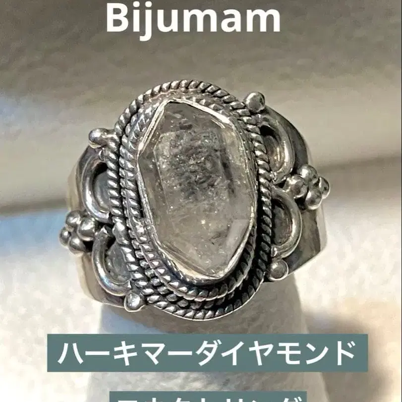 비쥬마무 Bijumam 하키머 다이아몬드 커넥트 반지 실버 925 프리 사이즈 비쥬마무 Bijumam의 커넥트 반지, 하키머 다이아몬드입니다. 작은 양끝이 뾰족한 결정 모양이 마음에 들었습니다. 빛을 받으면 내추럴한 성장선이 보이는 느낌도 좋습니다 ⭐︎ 검은 내포물의 그림자가 비쳐 보이지만, 하키머의 특징입니다. 카본이 그 외의 투명 부분을 더욱 투명하게 하는 작용을 한다고 어디선가 읽었습니다. 실버와 골드색의 놋쇠로, 2가지 색상의 디자인이 많은 비쥬마무의 커넥트 반지이지만, 이 상품은 전부 실버 925 타입입니다. 하키머와 실버의 모노톤으로 차분한 색감이 멋스럽다고 생각합니다. 프리 사이즈이지만, 현재 13호, 비교적 작은 프리 사이즈입니다. 딱 맞게 닫아 착용했을 때, 저에게는 조금 타이트한가? 라고 느껴 판매합니다. 상태 좋음. 관리 완료. 익명 배송 메루카리 택배. 잘 부탁드립니다.