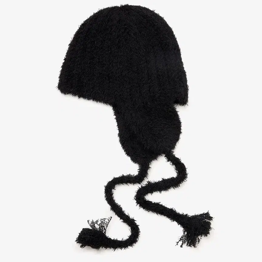 KIJIMA TAKAYUKI의 블랙 니트 모자(POODLE FUR EAR BEANIE)입니다.