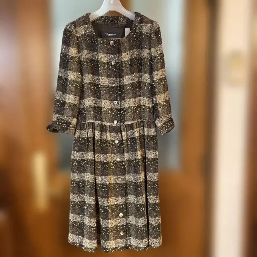 노스 컨티넨트 패브리스 체크 무늬 원피스 긴팔