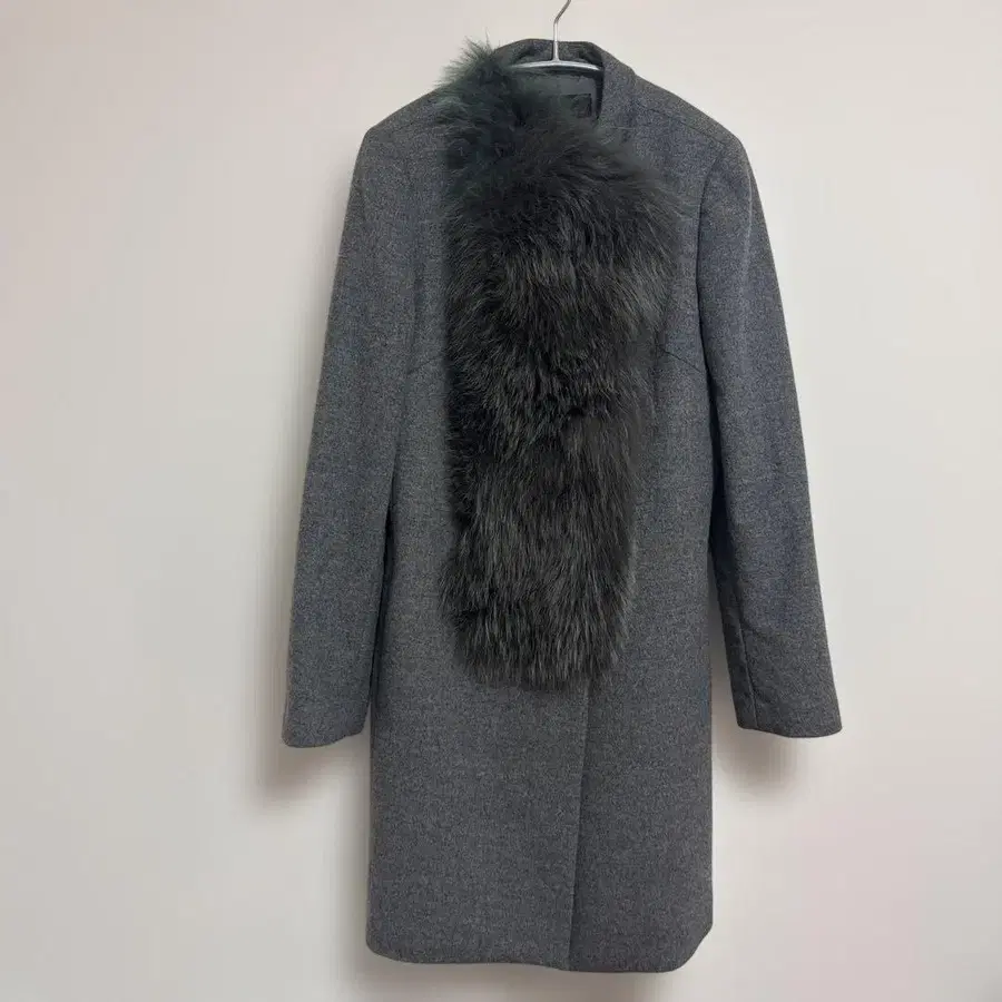 [ 새상품급 ] 캐시미어 100% 폭스 카라 부착 롱 코트