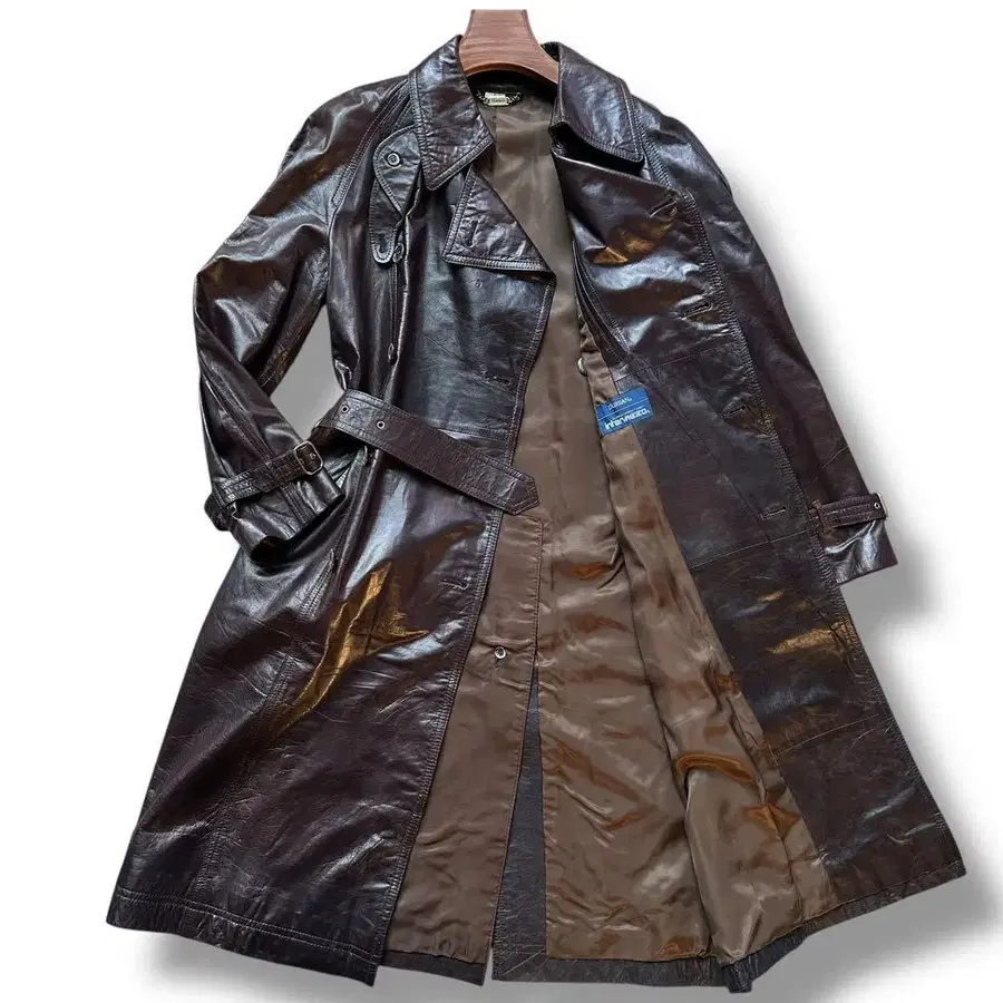 가죽 트렌치 트렌치코트 롱 코트 천연 가죽 남성용 더블 턱 스트랩 롱