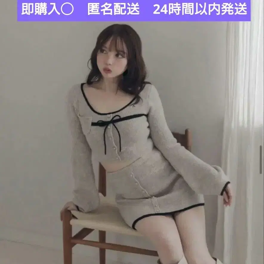 • andwang 리본 오프숄더 니트 세트 니트