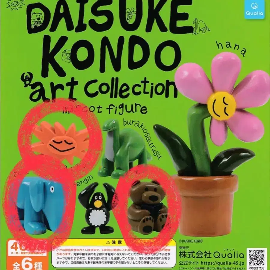 Daisuke Kondo의 아트 컬렉션 마스코트 피규어 세트, 총 6종 중 펭귄, 곰, 코끼리를 포함. - 시리즈명: DAISUKE KONDO art collection - 캐릭터: 마스코트 피규어 - 종류: 총 6종 - 내용물: 태양, 곰, 코끼리 - 브랜드: Qualia 방문해 주셔서 감사합니다. 캡슐은 포함되지 않습니다. 미개봉 상품만 발송됩니다.