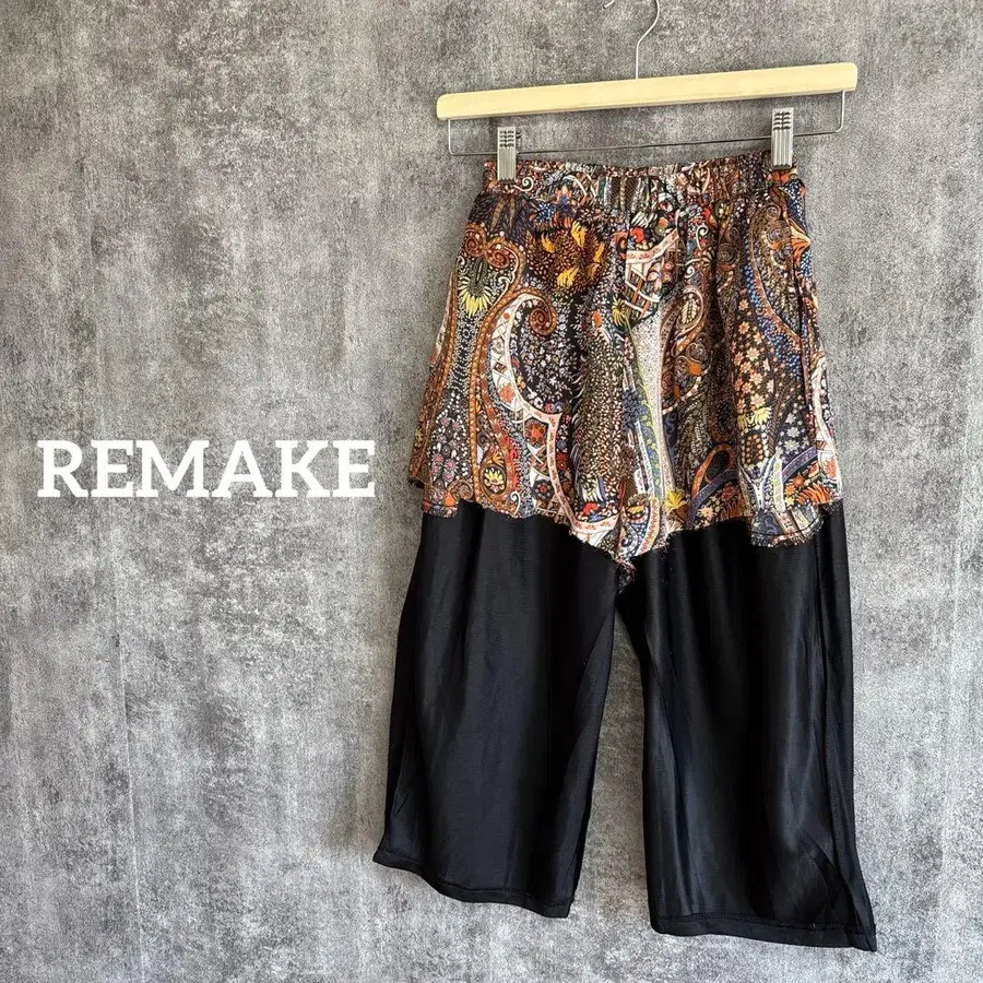 구제 의류 리메이크 에스닉 패턴 하프 팬츠 밴딩 컷오프 개성있는 레이어드