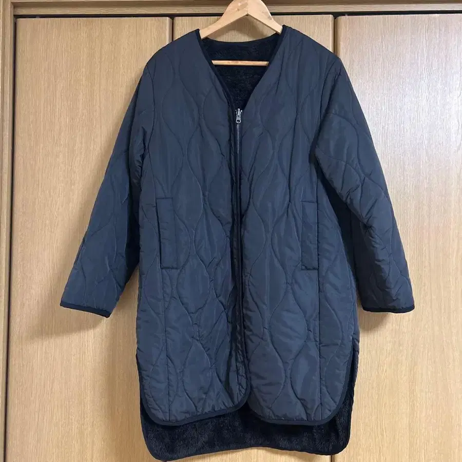 LASUD 블랙 퀼팅 리버서블 롱 자켓