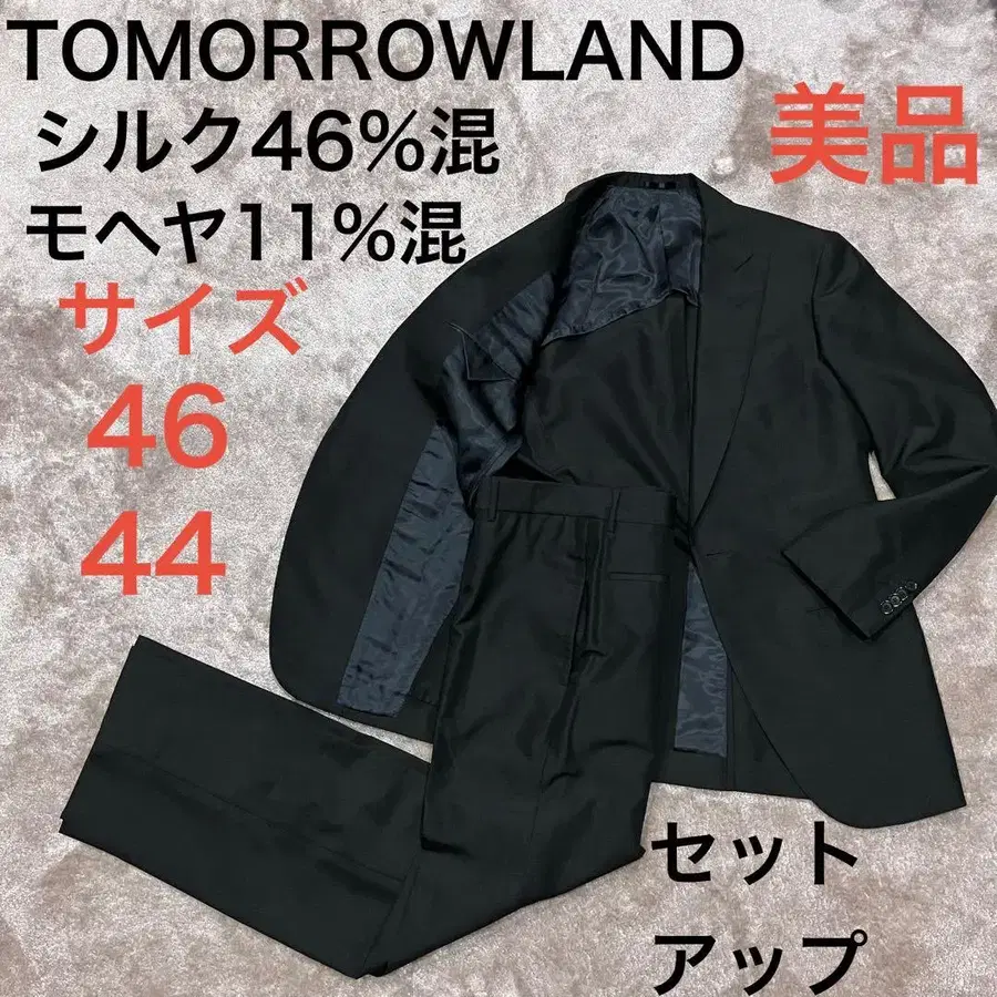 46% 실크 혼방으로 촉감이 좋고 고급스러운 광택감이 있어 고급 수트 셋업입니다.
