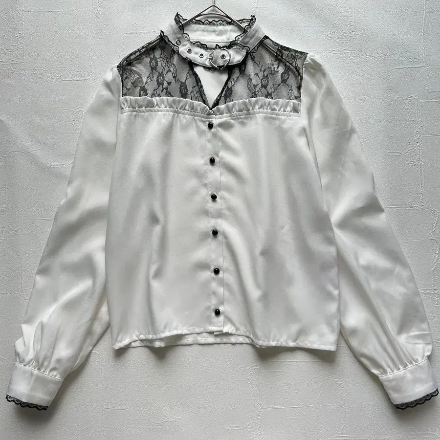 MARS 마즈 레이스 절개 하트 버클 블라우스 화이트 블랙 긴팔