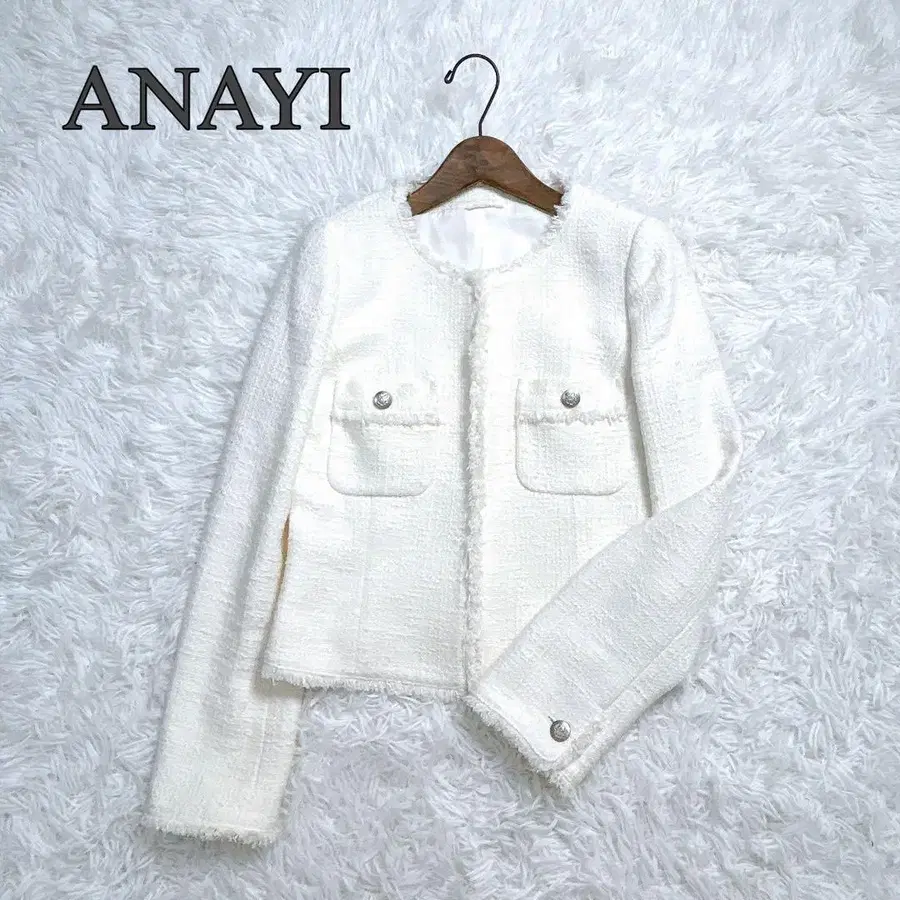 고급스러운 트위드 소재가 눈길을 끄는 ANAYI의 노카라 자켓입니다.