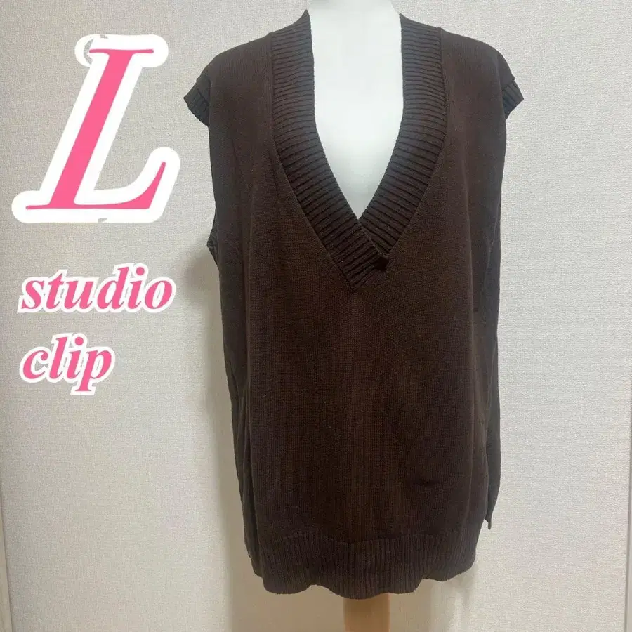 studio CLIP 브라운 V넥 베스트 L 캐주얼 코디