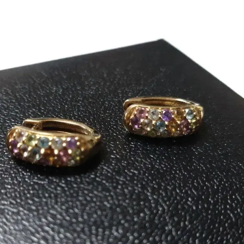 K10 귀걸이 컬러 스톤 후프 귀걸이
