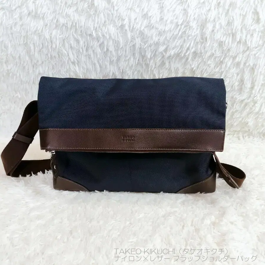 TAKEO KIKUCHI (다케오 키쿠치)의 나일론 x 가죽 플랩 숄더백입니다. 네이비 색상의 나일론 소재에 브라운 가죽을 조합한 차분한 배색으로, 캐주얼부터 포멀한 스타일까지 폭넓게 활용 가능합니다. 플랩 사양으로 내용물이 잘 보이지 않아 평소 사용은 물론 출퇴근, 외출 시에도 추천합니다.