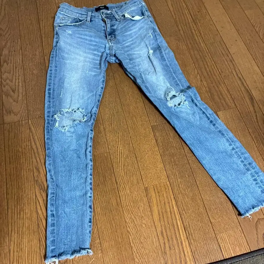 데미지 가공 라이트 블루 스키니 데님 M 사이즈