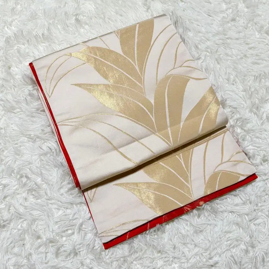 후쿠로 오비 변형 백합 문양 백합 잎 문양 크림색 골드 자수