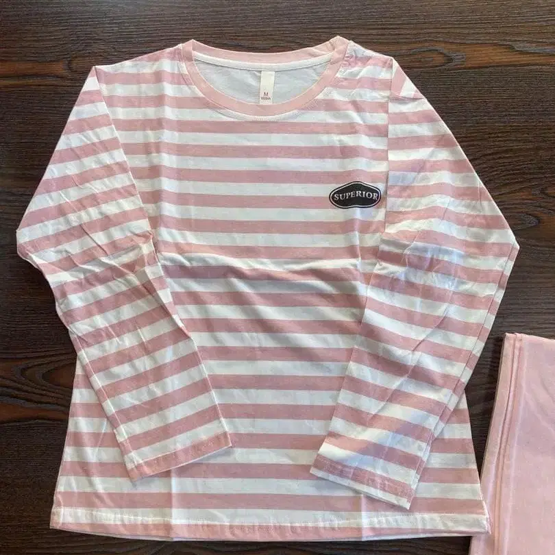 SUPERIOR 핑크 스트라이프 긴팔 룸웨어 M
