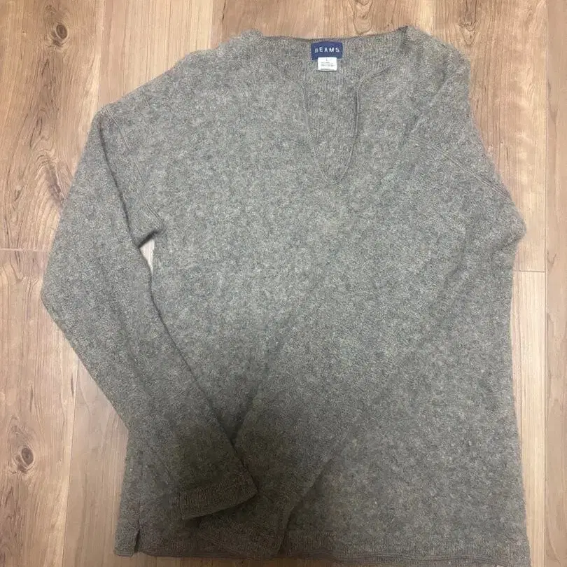 BEAMS 100% 울 그레이 V넥 스웨터 L