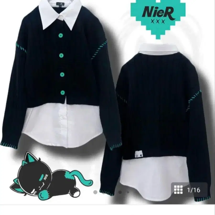 자동 번역되었어요. 원문보기NieR 페이크 레이어드 니트 가디건 시엘